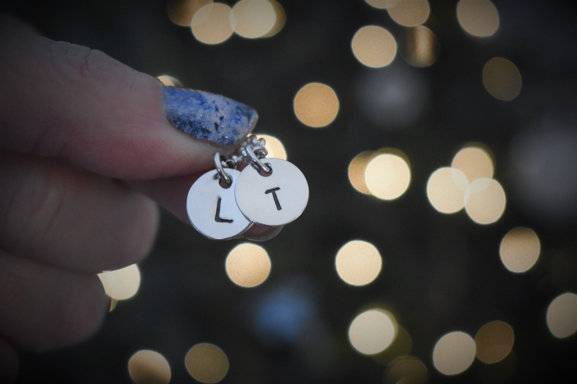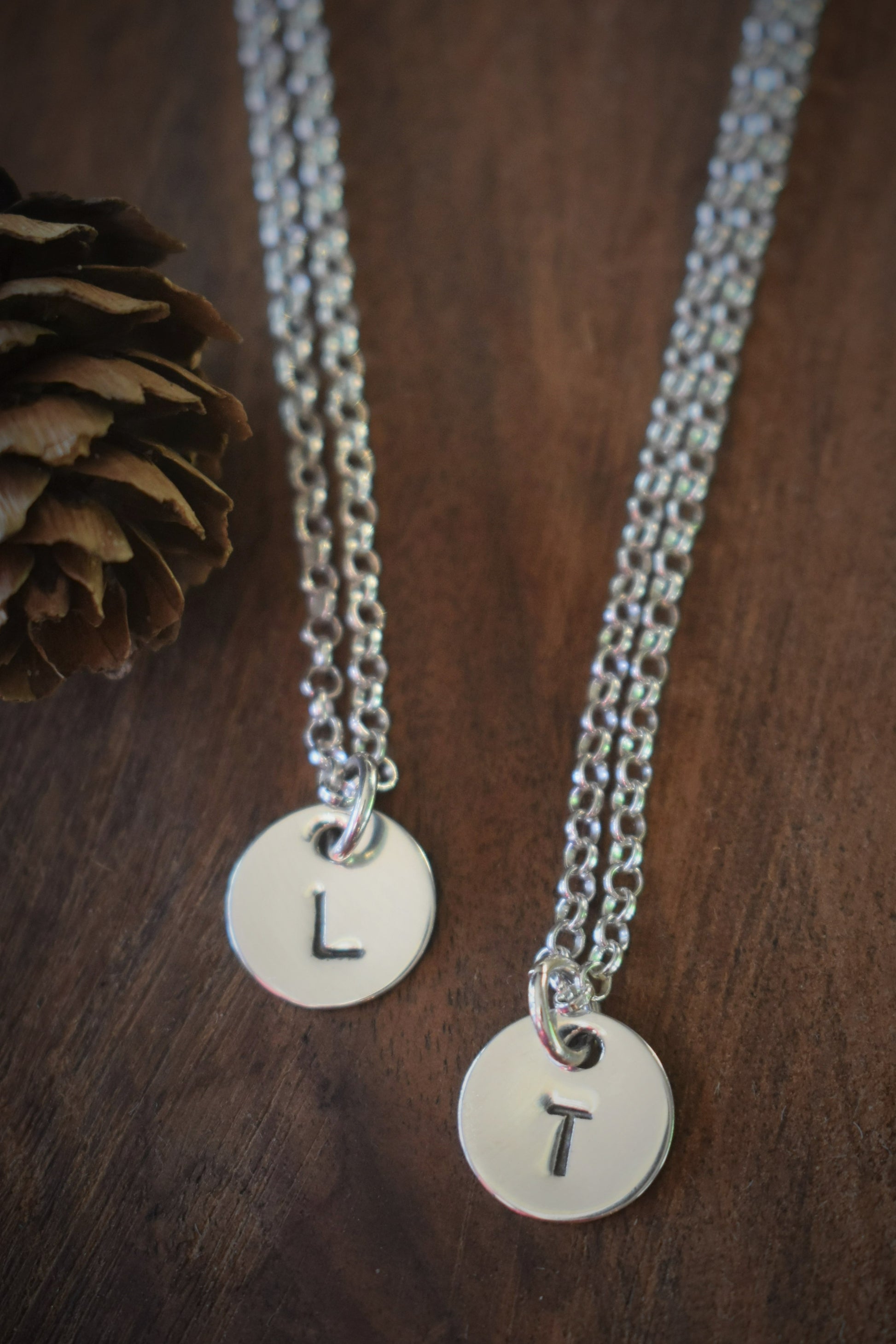 Simple, classy, meaningful. I've made many many monogram necklaces through the years. These little sterling discs are hand cut and stamped by me and polished to a mirror shine.